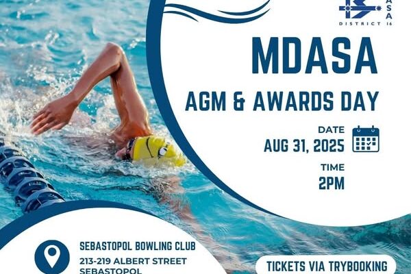 Join us to celebrate the achievements of the Midlands District Swimmers in the 24/25 season and get set for the 2025-26 season by nominating our new committee. All positions are open. Where: THE SEBASTOPOL BOWLING CLUB ON When: SUNDAY 31ST AUGUST AT 2:00pm Cost: $5.15 inc Trybooking … [Read more...] about MDASA AGM and Awards